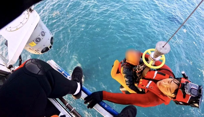 | 경북 동해상에 풍랑특보가 발효중인 가운데 동해해경청과 경북 울진해경이 29일 오전 영덕군 강구항 남동쪽 해상 12km 지점에서 홀로 조업을 하던 중 전복사고를 당한 2.7t급 어선 선장을 헬기 등으로 긴급 구조하고 있다.[사진=동해해경청]2025.11.29 nulcheon@newspim.com |