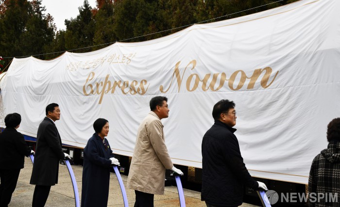 [서울=뉴스핌] 양윤모 기자 = 오승록 노원구청장이 29일 오후 서울 노원구 공릉동 화랑대철도공원에서 개최된 '익스프레스 노원 by 미라쥬' 개장식에 참석해 노원의 새로운 관광 명소 탄생을 축하했다.'익스프레스 노원 by 미라쥬'는 1량은 영화 세트 제작진이 특수 제작했으며, 1량은 무궁화호 객차를 리모델링해 주방 및 운영 공간으로 구성했다. 내부는 정교한 문양과 샹들리에, 유럽풍 소품으로 꾸며져 특급열차의 화려한 감성을 그대로 담아냈다.레스토랑에서는 '태릉솔밭 갈비 파스타', '불암산 리조또' 등 노원만의 특색을 담은 메뉴를 선보일 예정이며, 지역 상권 활성화와 지역 명소화를 위해 로컬 브랜드 사업자와의 협업을 통해 운영한다.레스토랑은 12월 2일부터 정식 운영되며, 매주 월요일을 제외한 화요일부터 일요일까지 오전 11시부터 오후 9시까지 운영된다. 설·추석 명절 당일 휴무 외에는 공휴일에도 정상 운영될 예정이다. [사진=노원구청] 2025.11.29 yym58@newspim.com