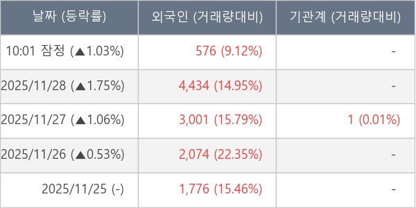 [표] 외국인ㆍ기관 순매매량 (단위 주)