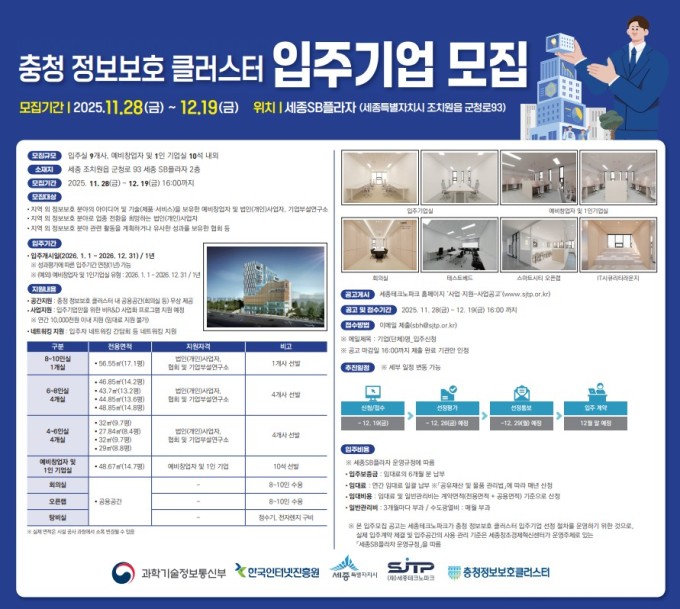 충청 정보보호 클러스터 입주기업 모집 포스터. [사진=세종테크노파크] 2025.12.01 jongwon3454@newspim.com