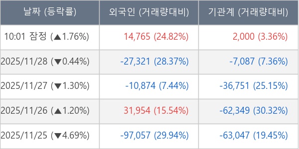 ※ 사모펀드 등 일부 기관의 순매매량은 표시되지 않음