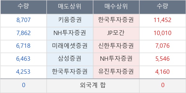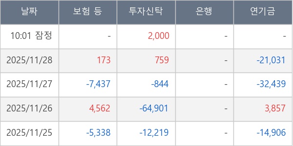 [표] 주요 기관별 순매매량 (단위 주)