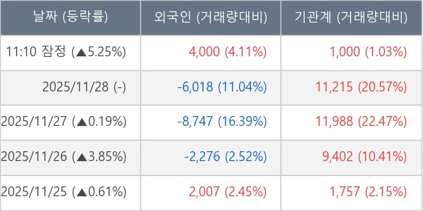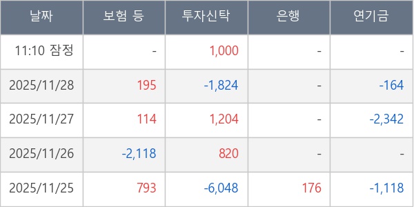 ※ 사모펀드 등 일부 기관의 순매매량은 표시되지 않음