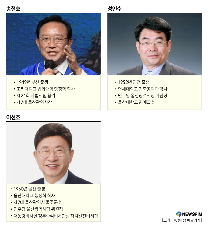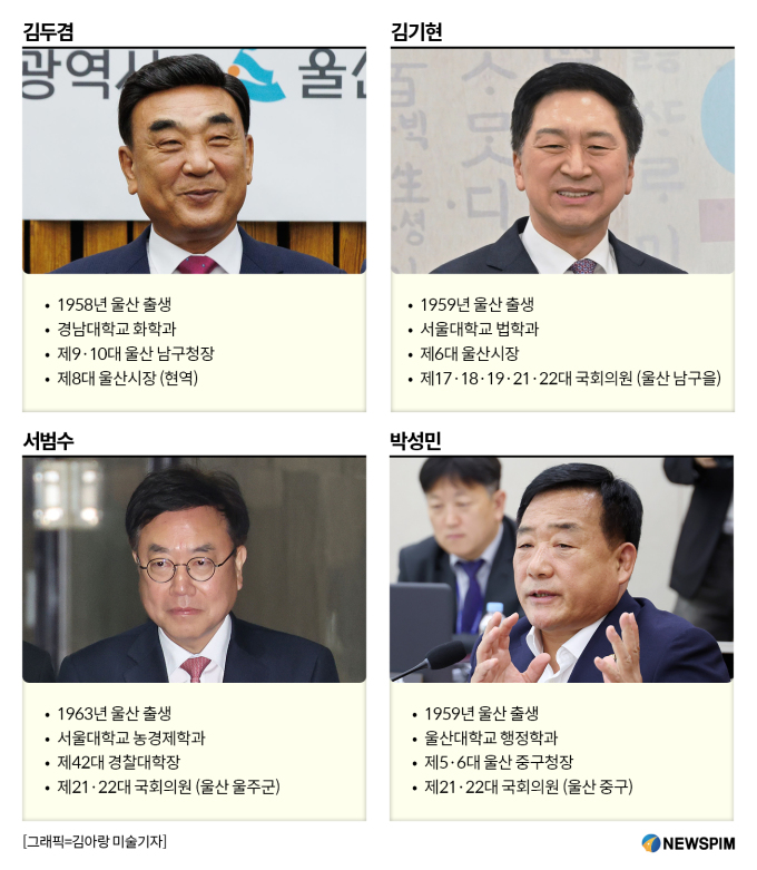 [서울=뉴스핌] 배정원 박서영 기자 = 내년 6월 3일 치러지는 전국동시지방선거가 6개월 앞으로 다가오면서 격전지로 평가되는 부산·울산·경남(부울경) 지역 중 한 곳인 울산시장 후보군에 관심이 쏠리고 있다.