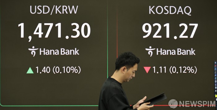 [서울=뉴스핌] 양윤모 기자 = 2일 오전 코스피가 전장 종가보다 18.72 포인트(0.48%) 상승하며 3939.09로, 코스닥은 1.11 포인트(0.12%) 하락한 921.27로 장을 시작한 가운데, 서울 중구 하나은행 딜링룸에서 직원들이 업무를 보고 있다. 서울외환시장에서 달러/원 환율은 전장 대비 1.40원 상승한 1471.30원에 주간거래를 시작했다. 2025.12.02 yym58@newspim.com
