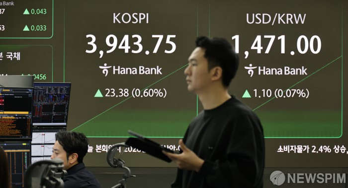 [서울=뉴스핌] 양윤모 기자 = 2일 오전 코스피가 전장 종가보다 23.38 포인트(0.60%) 상승하며 3943.75로, 코스닥은 1.11 포인트(0.12%) 하락한 921.27로 장을 시작한 가운데, 서울 중구 하나은행 딜링룸에서 직원들이 업무를 보고 있다. 서울외환시장에서 달러/원 환율은 전장 대비 1.10원 상승한 1471.00원에 주간거래를 시작했다. 2025.12.02 yym58@newspim.com