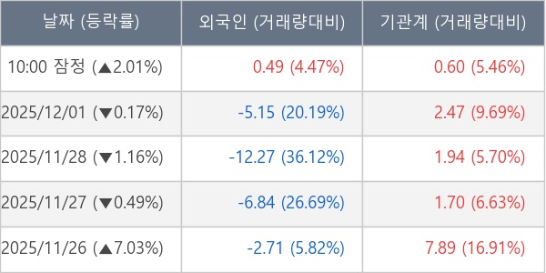 ※ 사모펀드 등 일부 기관의 순매매량은 표시되지 않음