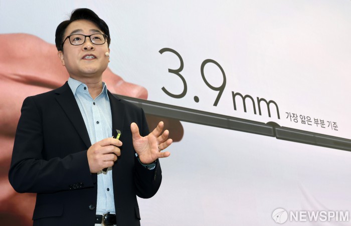 [서울=뉴스핌] 최지환 기자 = 강민석 삼성전자 부사장이 2일 오전 서울 서초구 삼성 강남에서 열린 삼성전자 갤럭시 Z 트라이폴드 출시 미디어데이에서 갤럭시 Z 트라이폴드를 소개하고 있다. 2025.12.02 choipix16@newspim.com