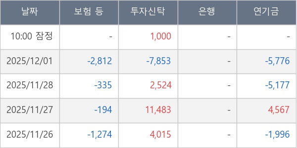 ※ 사모펀드 등 일부 기관의 순매매량은 표시되지 않음