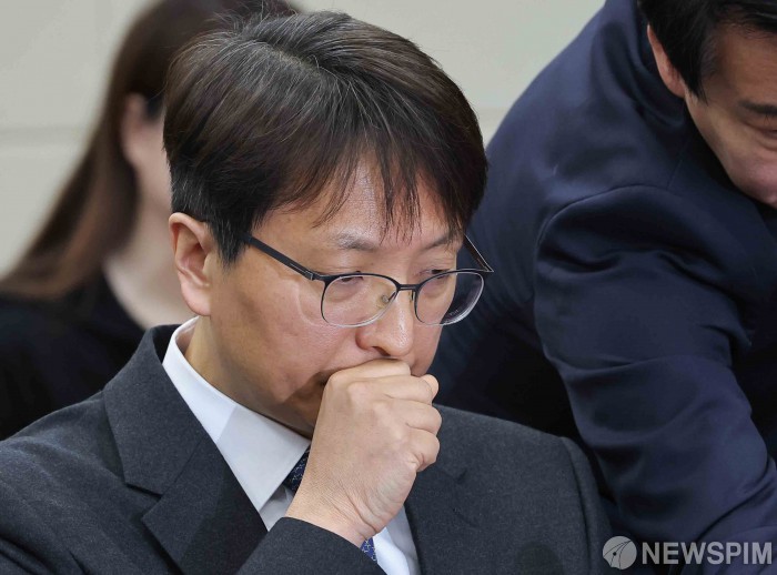 | [서울=뉴스핌] 윤창빈 기자 = 박대준 쿠팡 대표이사가 2일 서울 여의도 국회 과학기술정보방송통신위원회에서 열린 쿠팡 침해사고 관련 현안질의에서 기침을 하고 있다. 2025.12.02 pangbin@newspim.com |