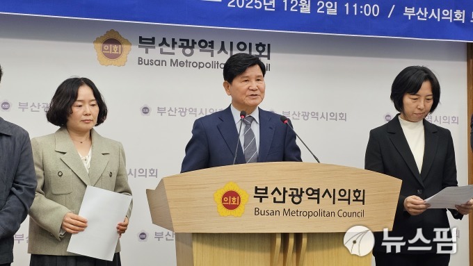 | [부산=뉴스핌] 남동현 기자 = 더불어민주당 부산광역시당 2030부산엑스포유치실패검증조사특별위원회가 2일 오전 부산시의회 브리핑룸에서 2030 부산세계박람회 유치 실패 원인과 책임 규명을 요구하는 기자회견을 하고 있다. 2025.12.02 |