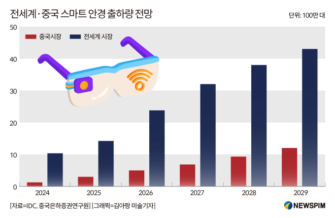 또 2029년에는 전세계 스마트 안경 출하량이 4000만 대를 돌파할 것으로 예상하며, 2024~2029년 5년간 연평균 성장률(CAGR)은 55.6%에 달할 것으로 전망했다.