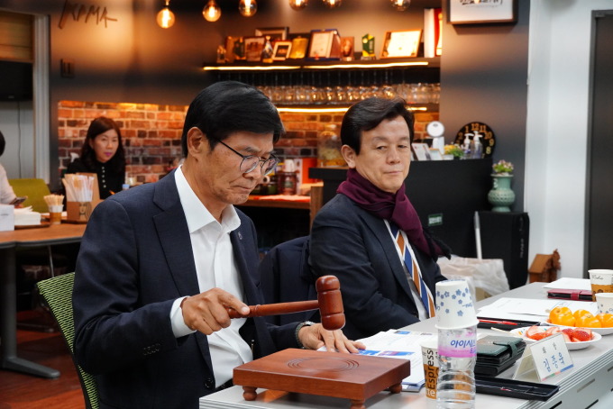 | 조규일 경남 진주시장(오른쪽)이 지난 1일 서울 서초구 한국자동차산업협동조합에서 열린 2025년 임시 이사회에 참석해 주요 안건을 심의하고 있다. [사진=진주시] 2025.12.02 |