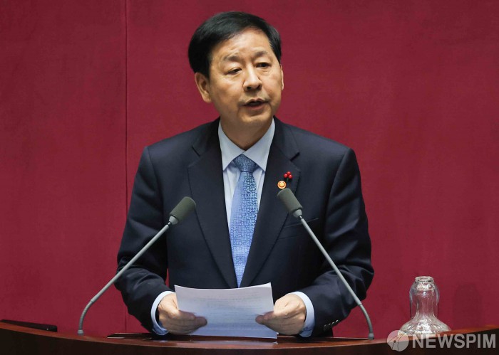 [서울=뉴스핌] 윤창빈 기자 = 구윤철 부총리 겸 기획재정부 장관이 2일 서울 여의도 국회에서 열린 본회의에서 법인세법 일부개정법률안, 교육세법 일부개정법률안에 대한 제안설명을 하고 있다. 2025.12.02 pangbin@newspim.com