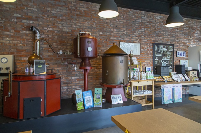 증류주 체험은 양조장에서 생산한 막걸리를 사용한다. 1L 막걸리를 사용해서 약 150ml 증류주를 얻는다. 흥미로운 건 증류주가 떨어질 때 치자나 히비스커스 티백을 올려둔다. 치자를 쓰면 노란빛, 히비스커스를 쓰면 붉은빛을 띤 증류주가 만들어져 눈으로도 즐거운 체험이 된다. 완성된 증류주의 도수는 38~39도 정도다.
