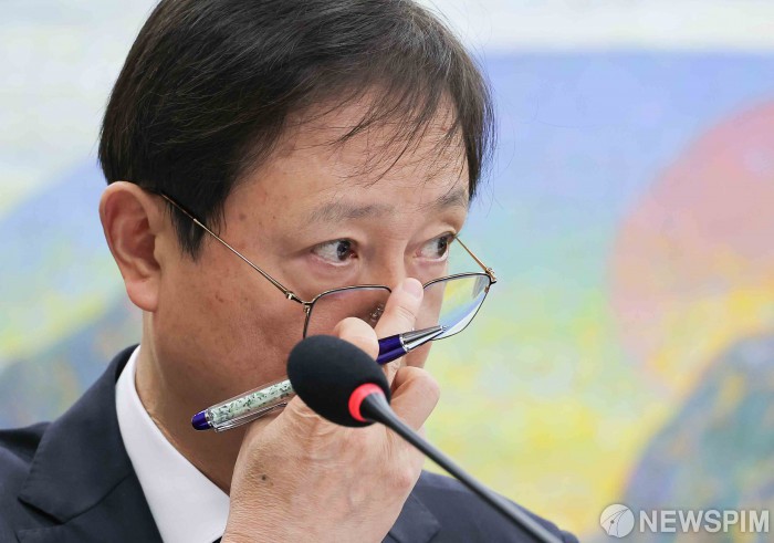 [서울=뉴스핌] 윤창빈 기자 = 이찬진 금융감독원장이 3일 서울 여의도 국회 정무위원회에서 열린 쿠팡 개인정보 유출 관련 현안질의에서 의원 질문을 듣고 있다. 2025.12.03 pangbin@newspim.com