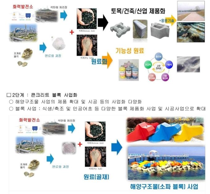 이 회사는 화력발전소에서 발생하는 석탄재(슬러지)와 수산 부산물인 굴 패각을 재활용하는 '자원순환형' 신규 사업을 추진하고 있다.