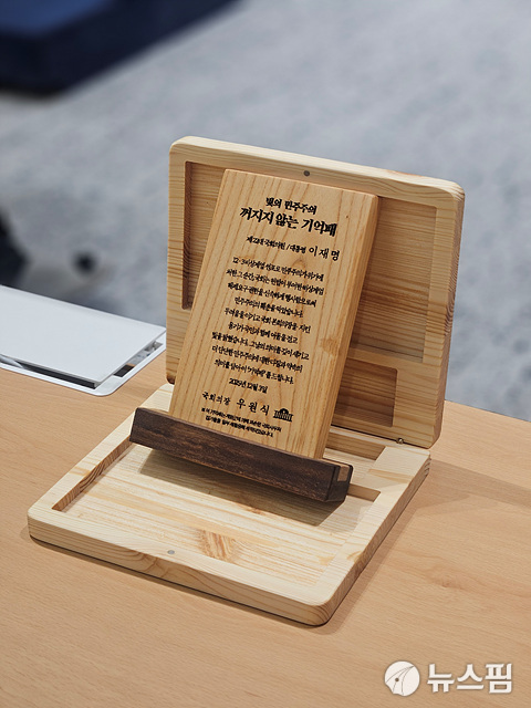 기념패 이름은 '빛의 민주주의, 꺼지지 않는 기억패'다.