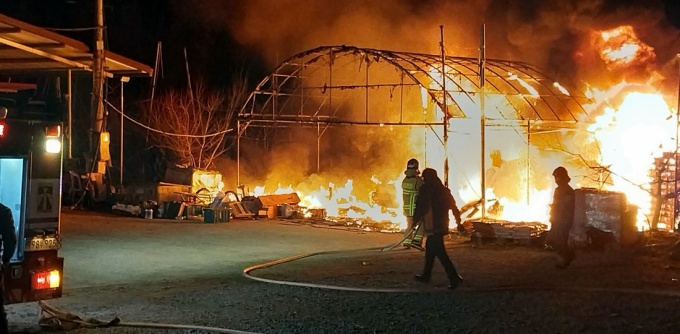 [예천=뉴스핌] 남효선 기자 = 경북 예천군의 한 비닐하우스에서 화재가 발생해 발화 30여 분 만에 진화됐다. 다행히 인명피해는 없었다.