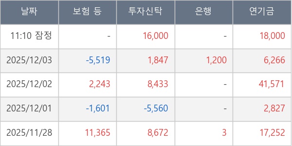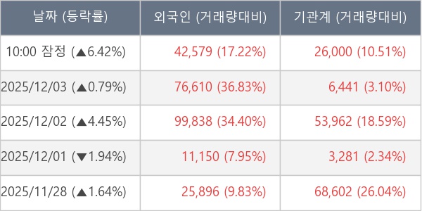 ※ 사모펀드 등 일부 기관의 순매매량은 표시되지 않음