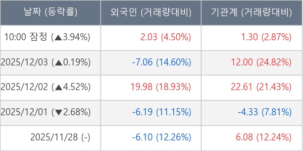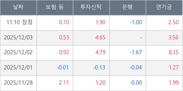 [표] 주요 기관별 순매매량 (단위 만주)