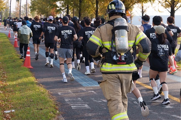 이날 현장에는 실제 임무 장비를 착용한 소방관 러너들의 모습이 특히 눈길을 끌었다. 방화복과 공기 호흡기(SCBA), 산소통의 무게를 그대로 짊어진 채 코스를 이어가는 모습은 소방관들이 평소 마주하는 책임과 헌신을 그대로 담아내며 현장에 깊은 울림을 전했다. 또한 다수의 소방관 러너들이 압도적인 체력과 스피드로 빠른 기록을 달성하며 소방관의 높은 신체적 역량을 보여주었다.