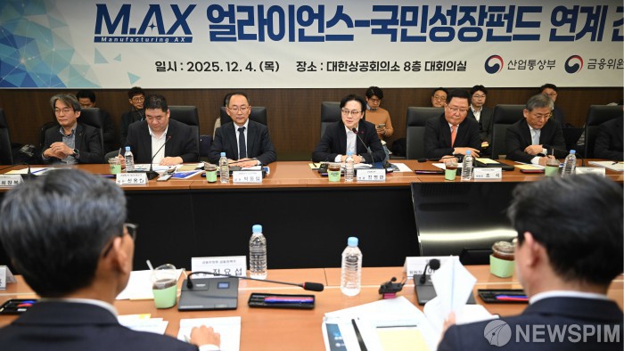 [서울=뉴스핌] 양윤모 기자 = 김정관 산업통상부 장관이 4일 오후 서울 대한상공회의소에서 개최된 ‘M.AX 얼라이언스–국민성장펀드 연계 간담회’에 참석해 모두발언을 하고 있다. 행사에는 김정관 산업통상부 장관과 이억원 금융위원장,박상진 산업은행 회장, 이호성 하나은행장, 조석 HD조선해양 부회장, 김용관 삼성전자 사장, 김동욱 현대자동차 부사장 등이 참석했다. 국민성장펀드는 향후 5년간 총 150조원을 투입해 대한민국의 미래 성장 기반을 만드는 산업금융 프로젝트다. [공동취재] 2025.12.04 yym58@newspim.com