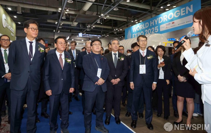 [서울=뉴스핌] 4일 고양시 킨텍스에서 World Hydrogen Expo 조직위원회가 주최하는‘World Hydrogen Expo 2025’가 개막되었다. 이날 개막식에는 김성환 기후에너지환경부 장관, 국회 수소경제포럼 공동대표 이종배 국회의원, 조직위원회 공동위원장(강남훈 한국자동차모빌리티산업협회 회장, 김재홍 한국수소연합 회장) 등을 비롯해 해외 정부 및 국제기구와 국내외 산업계 및 유관기관 등 400여 명이 참석했다. 올해부터 해외 26개국 279개의 국제기구, 유관기관, 기업체 등에서 참가한 가운데,기존 수소 국제 컨퍼런스와 H2 MEET 전시회를 통합해 역대 최대 규모로 7일까지 개최된다. [사진= World Hydrogen Expo 조직위원회] 2025.12.04 photo@newspim.com