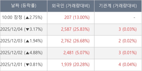 [표] 외국인ㆍ기관 순매매량 (단위 주)