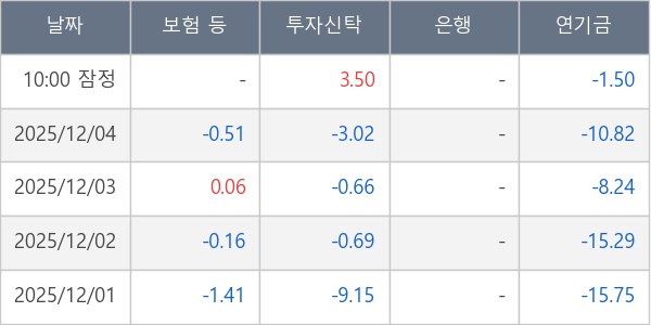 [표] 주요 기관별 순매매량 (단위 만주)