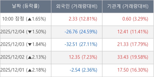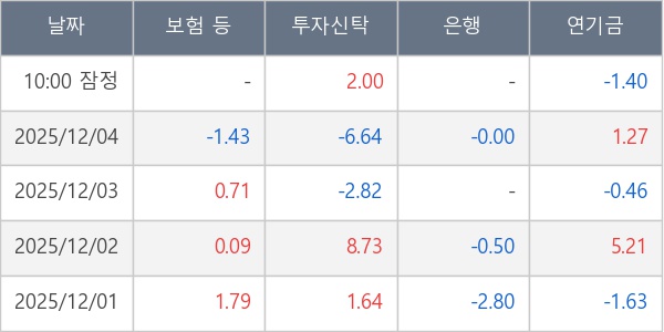 [표] 주요 기관별 순매매량 (단위 만주)