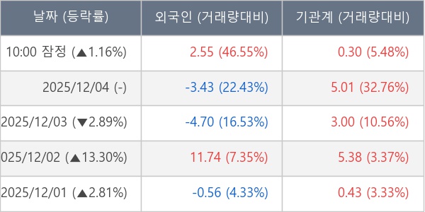 [표] 주요 기관별 순매매량 (단위 만주)