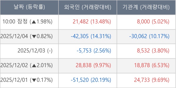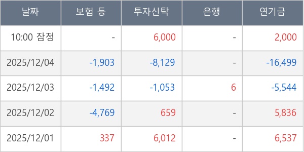※ 사모펀드 등 일부 기관의 순매매량은 표시되지 않음