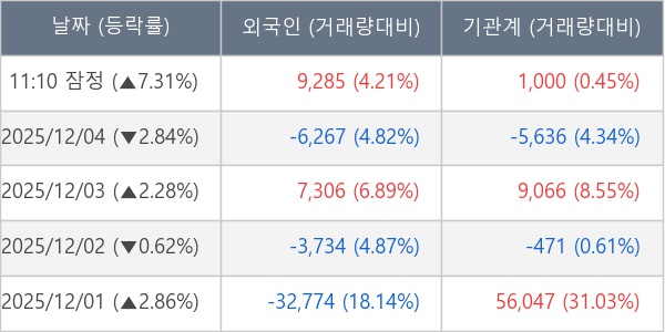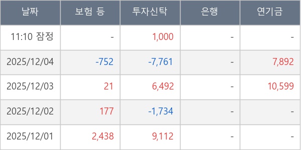 [표] 주요 기관별 순매매량 (단위 주)