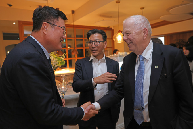 | [서울=뉴스핌] 김대현 문화체육관광부 제2차관이 4일 세계도핑방지기구(WADA) 총회가 열리고 있는 부산의 한 식당에서 국제올림픽위원회(IOC) 위원 만찬 행사를 열고 참석자와 인사를 나누고 있다. [사진 = 문화체육관광부] 2025.12.04 wcn05002@newspim.com |