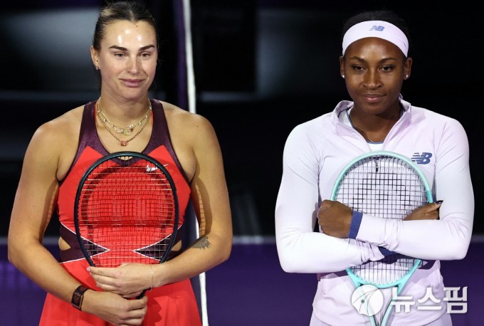 [리야드 로이터=뉴스핌] 박상욱 기자=코코 고프(오른쪽)와 아리나 사발렌카가 지난 11월 6일사우디아라비아 리야드 킹 사우드 대학교 실내 아레나에서 열린 여자프로테니스(WTA) 파이널 조별리그 경기를 앞두고 포즈를 취하고 있다. 2025.11.6 psoq1337@newspim.com