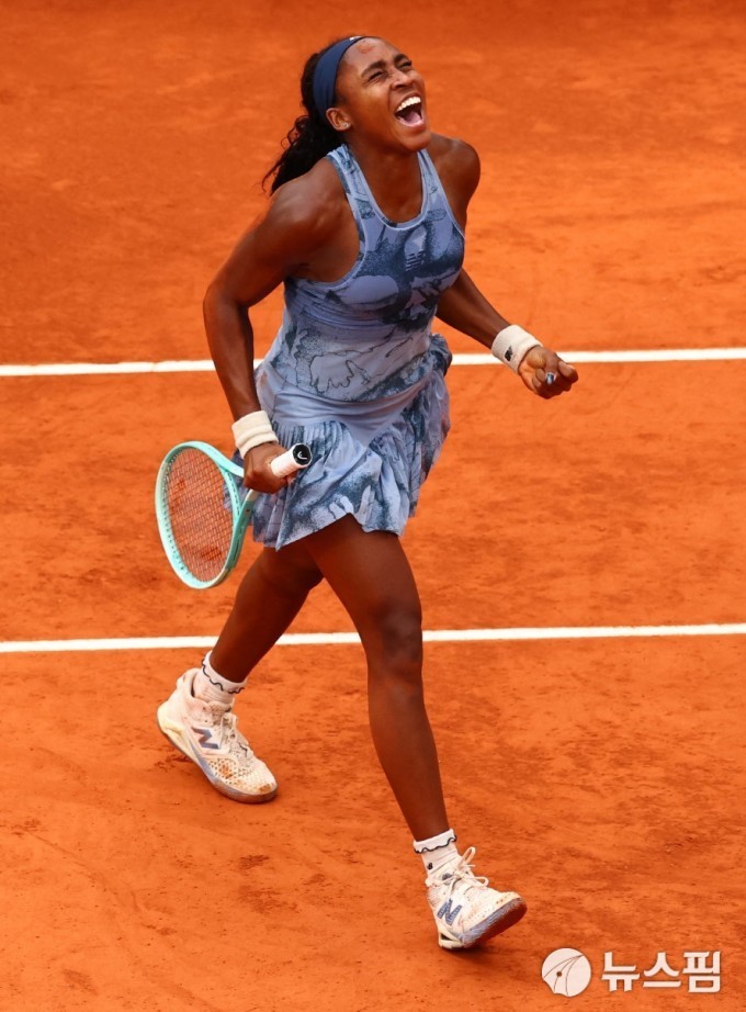 [파리 로이터=뉴스핌] 박상욱 기자= 고프가 지난 6월 7일 프랑스오픈 여자 단식 결승에서 우승을 확정짓고 포효하고 있다. 2025.06.07 psoq1337@newspim.com