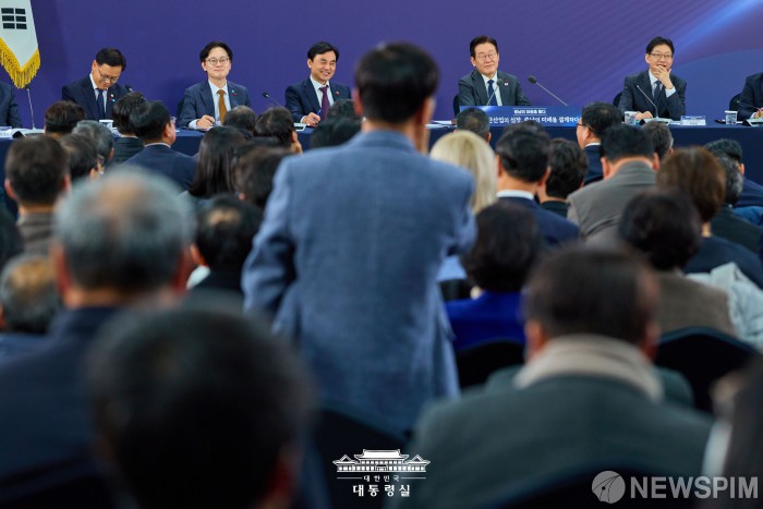 [서울=뉴스핌] 이재명 대통령이 지난 5일 충남 천안시 한국기술교육대학교에서 열린 '충남의 마음을 듣다' 타운홀 미팅에서 참석자들의 발언을 듣고 있다. [사진=대통령실] 2025.12.06 photo@newspim.com