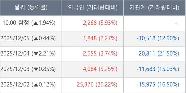[표] 외국인ㆍ기관 순매매량 (단위 주)