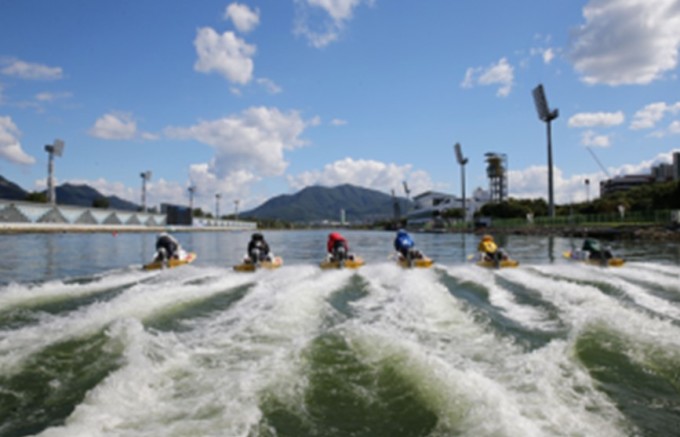 | 미사 경정장에서 선수들이 계류대를 출발해 경주에 출전하고 있다. [사진=국민체육진흥공단] |
