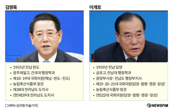 김영록 지사는 강진·완도 군수와 전남도 행정부지사, 18·19대 국회의원을 거친 관료·행정가형 인사로, 민선 7·8기 도정을 통해 농수축산·복지·균형발전과 '블루이코노미' 비전을 앞세워 안정적 이미지를 구축했다. 특히 오픈AI·SK AI데이터센터, 국가 AI컴퓨팅센터, 인공태양 연구시설, 고흥 우주발사체 산업 클러스터 등 대형 프로젝트 유치가 '3선 동력'으로 작용하고 있다는 평가다. 광역단체장 직무수행 평가 12개월 연속 1위, 각종 지지도 조사 선두 역시 현직 프리미엄을 뒷받침하는 지표로 거론된다.