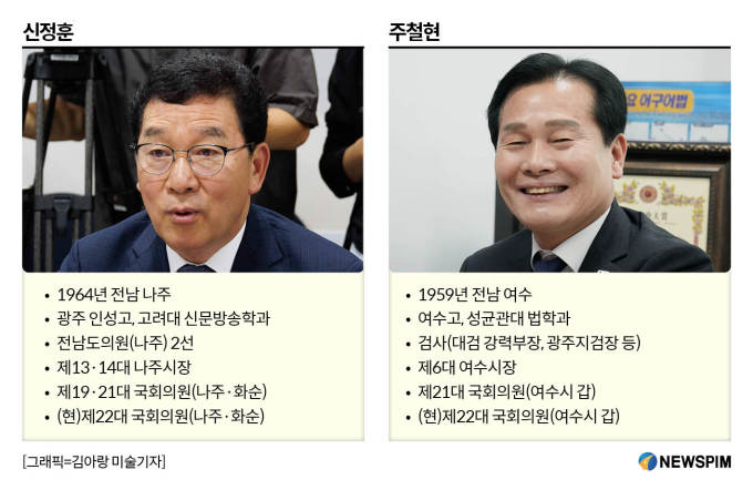 주철현 의원은 검사 출신으로 여수시장과 전남도당위원장을 역임한 해양·도시행정 전문가로, 동부권 해양·항만·도시 개발 어젠다를 앞세워 '동부권 심장' 이미지를 부각하고 있다. 일찌감치 도지사 출마를 공식화한 뒤 인구 감소와 지역경제 침체를 정면으로 거론하며 "무너져가는 전남을 되살릴 실무형 일꾼"을 자임하는 행보로 동부권 민심 파고들기에 나섰다.