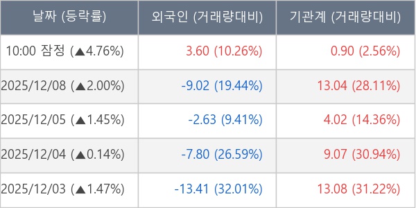 ※ 사모펀드 등 일부 기관의 순매매량은 표시되지 않음