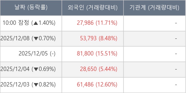 [표] 외국인ㆍ기관 순매매량 (단위 주)