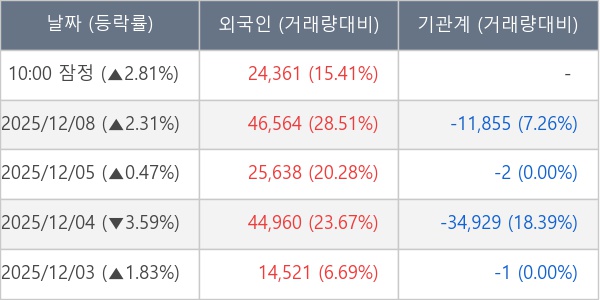 [표] 외국인ㆍ기관 순매매량 (단위 주)