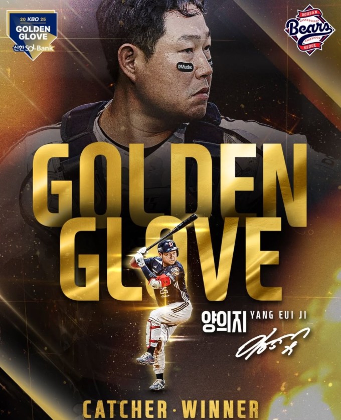양의지는 올해 정규시즌 130경기에서 타율 0.337로 2019년 이후 6년 만에 타격왕을 차지했다. 포수로 726이닝을 소화하며 수비 기준도 충족했고, 20홈런 89타점을 기록했다. 포수의 타격왕 2회 수상은 양의지가 KBO 최초다. 두산이 시즌을 9위로 마감했지만 그의 활약은 빛났다.