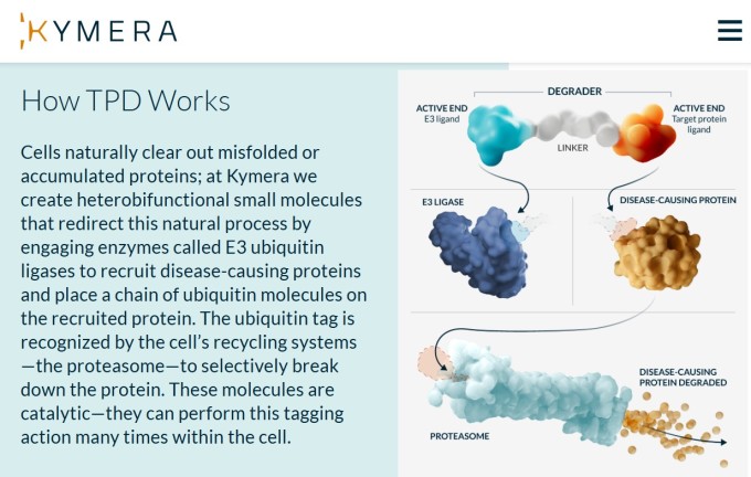 단백질 분해제는 특정 문제를 일으키는 유전자의 온 스위치 역할을 하는 단백질을 차단할 수 있어 암과 자가 면역 질환에 대한 좋은 치료제가 될 수 있다. 2015년 설립된 키메라는 이러한 표적 단백질 분해(TPD) 분야를 개척하며 면역 질환 분야에서 최초의 분해제를 임상 단계로 진입시켰다.
