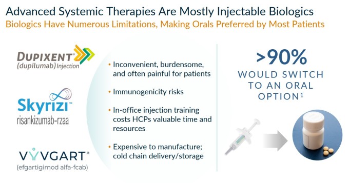 | 기존 주사제 치료제 vs 경구용 치료제 [자료 = 키메라 테라퓨틱스 홈페이지] |