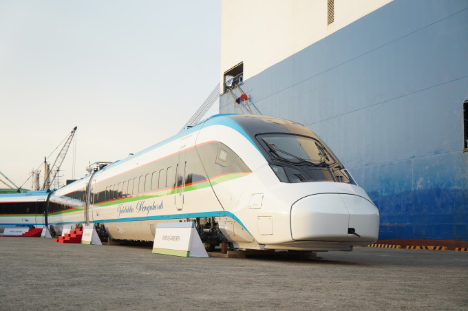 현대로템은 10일 경남 창원시 마산항에서 '우즈벡 고속차량 초도 편성 출항식'을 진행했다고 밝혔다.