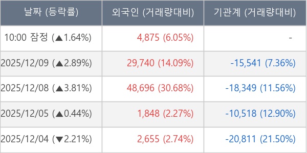 [표] 외국인ㆍ기관 순매매량 (단위 주)